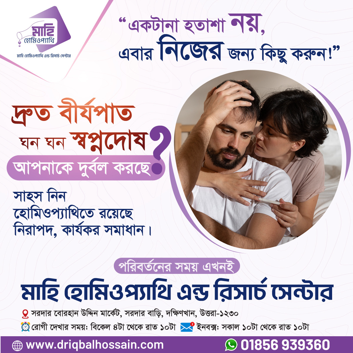 জটিল ও দীর্ঘমেয়াদী রোগের স্থায়ী নিরাময়ে আমরা দিচ্ছি সর্বাধুনিক ও পার্শ্বপ্রতিক্রিয়ামুক্ত হোমিওপ্যাথিক চিকিৎসা। আপনার সুস্থতাই আমাদের মূল লক্ষ্য।